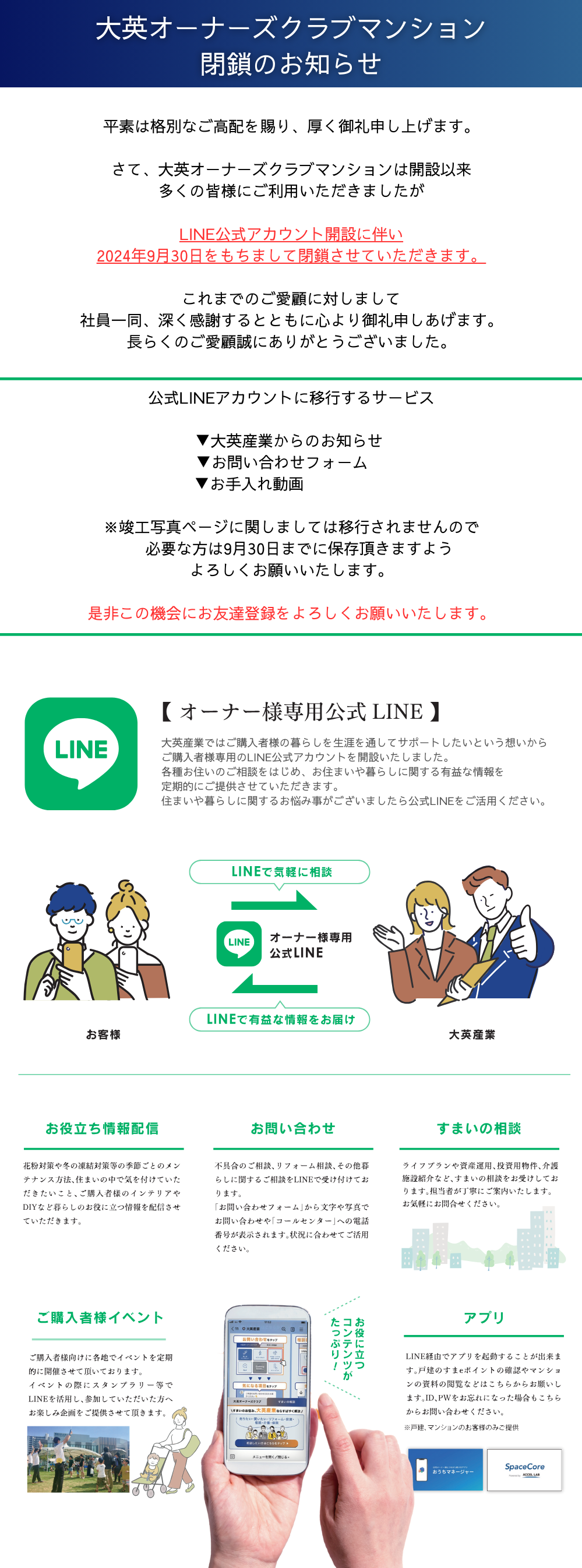 【重要】オーナーズサイト閉鎖のお知らせ